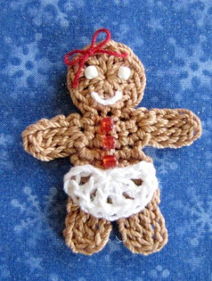 I had planned to do a series of quick to make Christmas patterns, but as usual, things have not gone as I planned. But I do want to share with you the pattern for this sweet little angel. She is tiny, only about 2 1/2" long, but she makes a cute ornament for the tree or a nice little surprise to tuck into a Christmas card. I designed an Angel similar to this one a few years ago as part of a set of bookmarks I was making at the time. My daughter, Bethany pointed out that the earlier version had no arms, poor thing! This new and improved version does have arms, so I hope Bethany will approve!