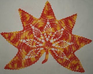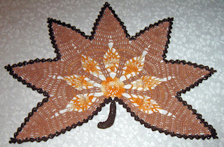 | This is my Autumn Leaf Doily, which is one of the "Autumn Lace Doilies" set. |