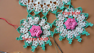 Note: When joining Motifs to Doily, hold wrong sides of pieces together